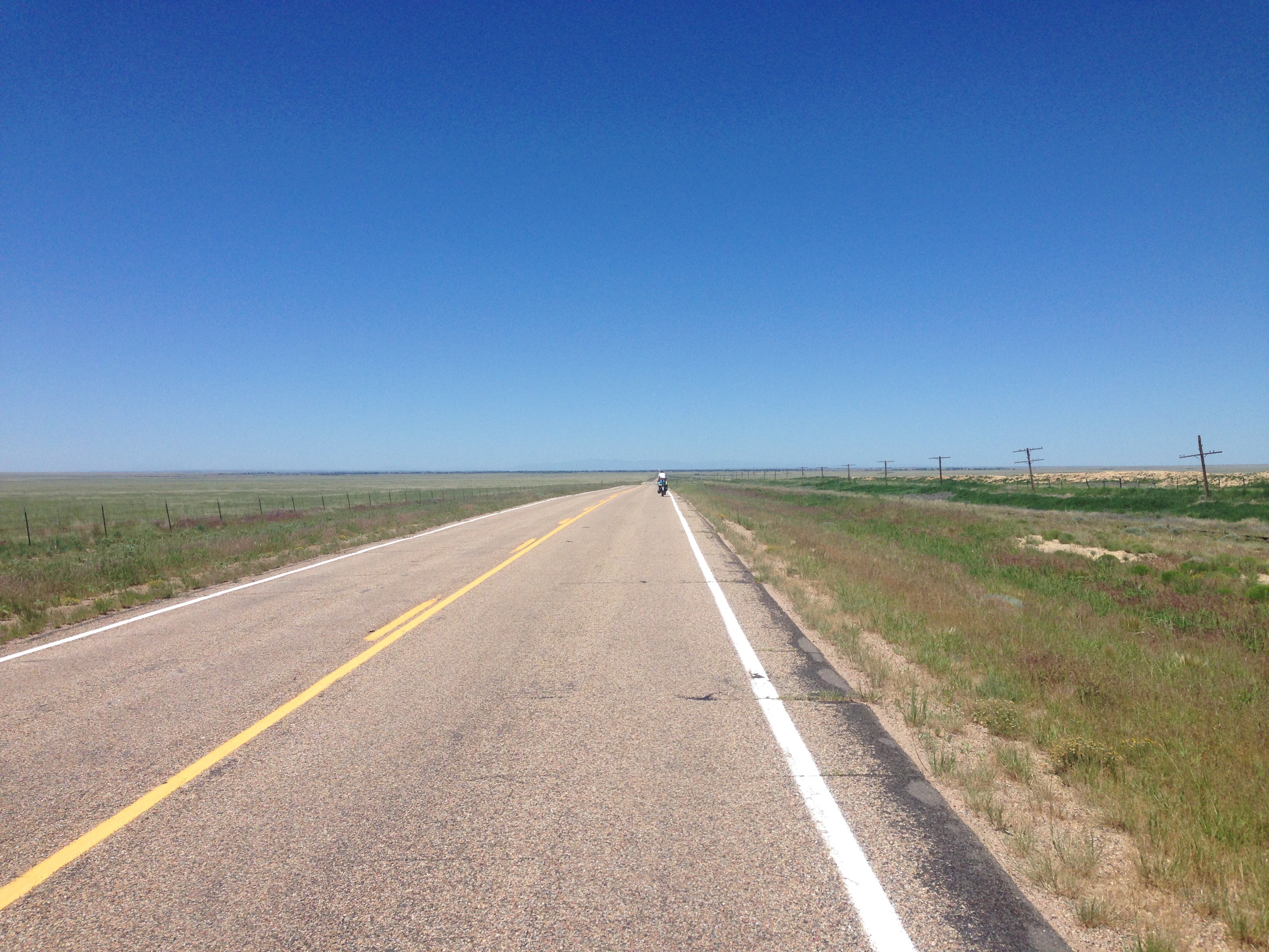 One of the interesting aspects of a ride like this is the people you encounter, often in the most out of the way places. Yesterday, I met Mr. Patel and his wife who own an old motel in a forgotten corner of Colorado known as Eads. It’s the only show for 50 miles around, in a town that is hanging on by the thinnest of threads. We arrived after 104.6 miles, in 101 heat, to find the place locked. We asked the owner of a tiny restaurant next door whether the motel was closed and she said no, he’d be back, but he was a one man show who did all the booking, cleaning, repairs, etc. by himself. Sure enough in 15 minutes there he was, gave me a room for $40 and couldn’t have been nicer. The place was dated, in the extreme, but was clean and tidy and had a working air conditioner. It is a testament to man’s endurance that such a man would come halfway around the world to eek out a living in this dusty town on the edge of oblivion. In Ordway today, I struck up a conversation with an ex rodeo rider who regaled me with his tale of having been arrested for drunk horse riding. He insisted he was just heading home, admitted he was drunk, and found it humorous that he had had his drivers license revoked when he wasn’t “driving” he was “riding”. Again a testament to man’s endurance…of nonsense.
